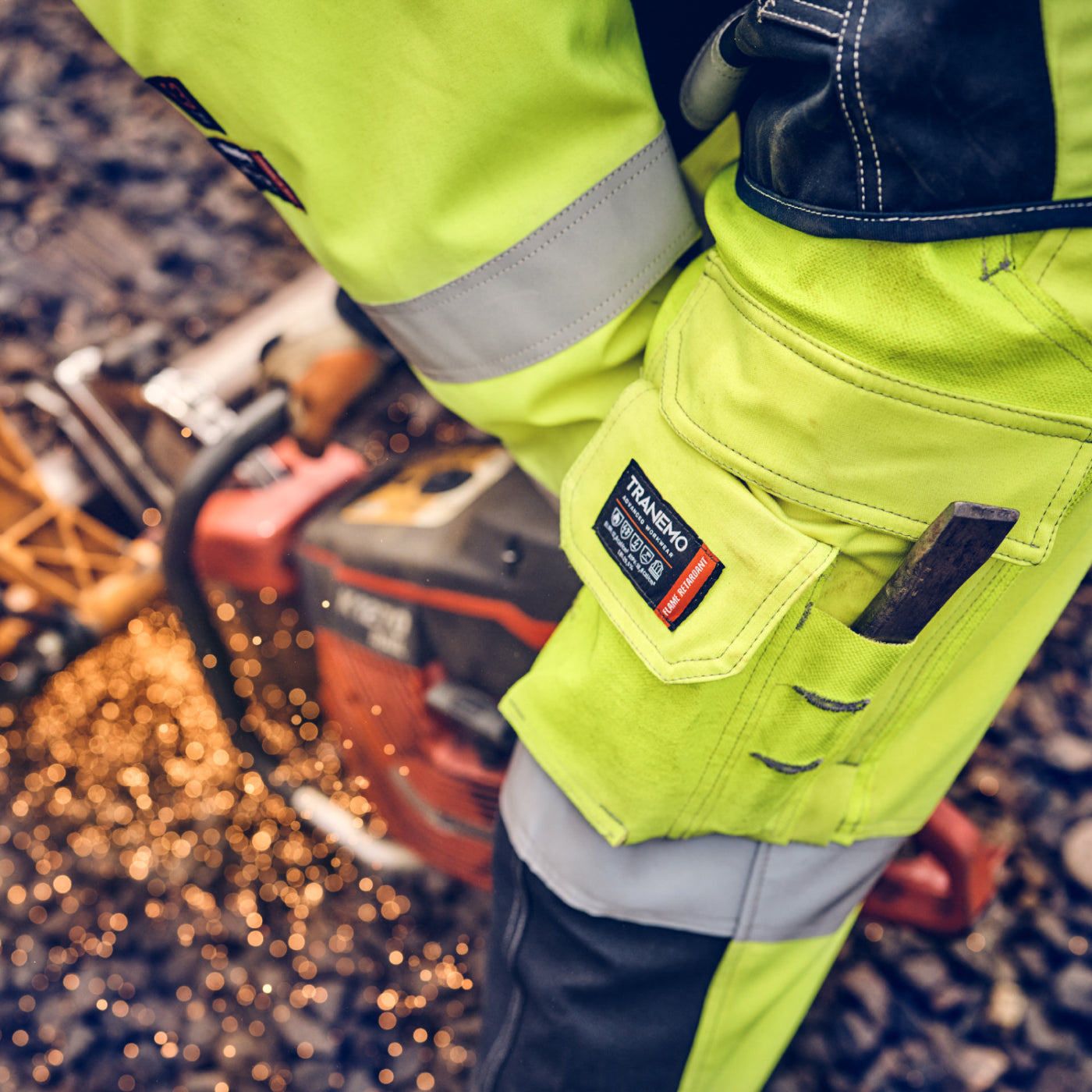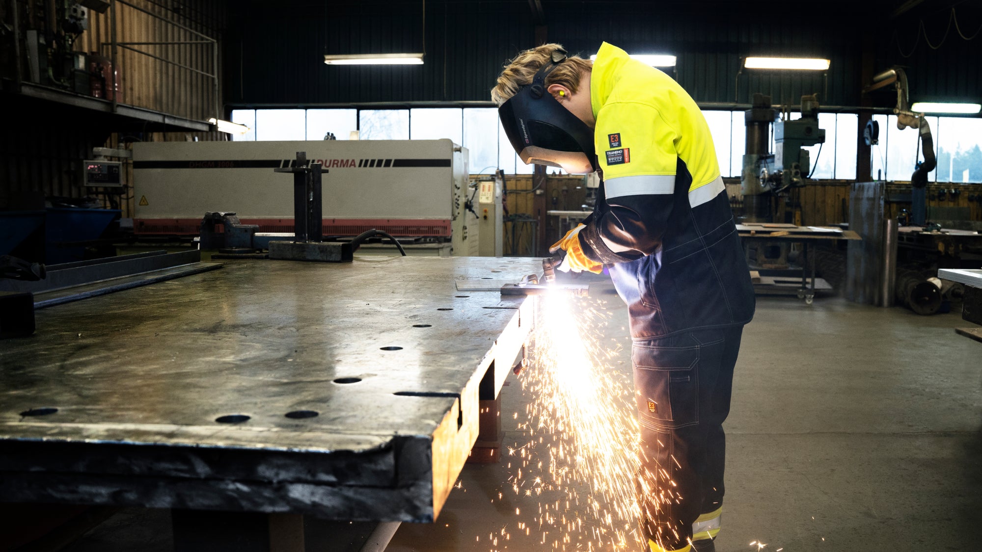 I filmen nedenfor tester Tranemo Cantex Weld metervaren mod gnister fra metalskæring.