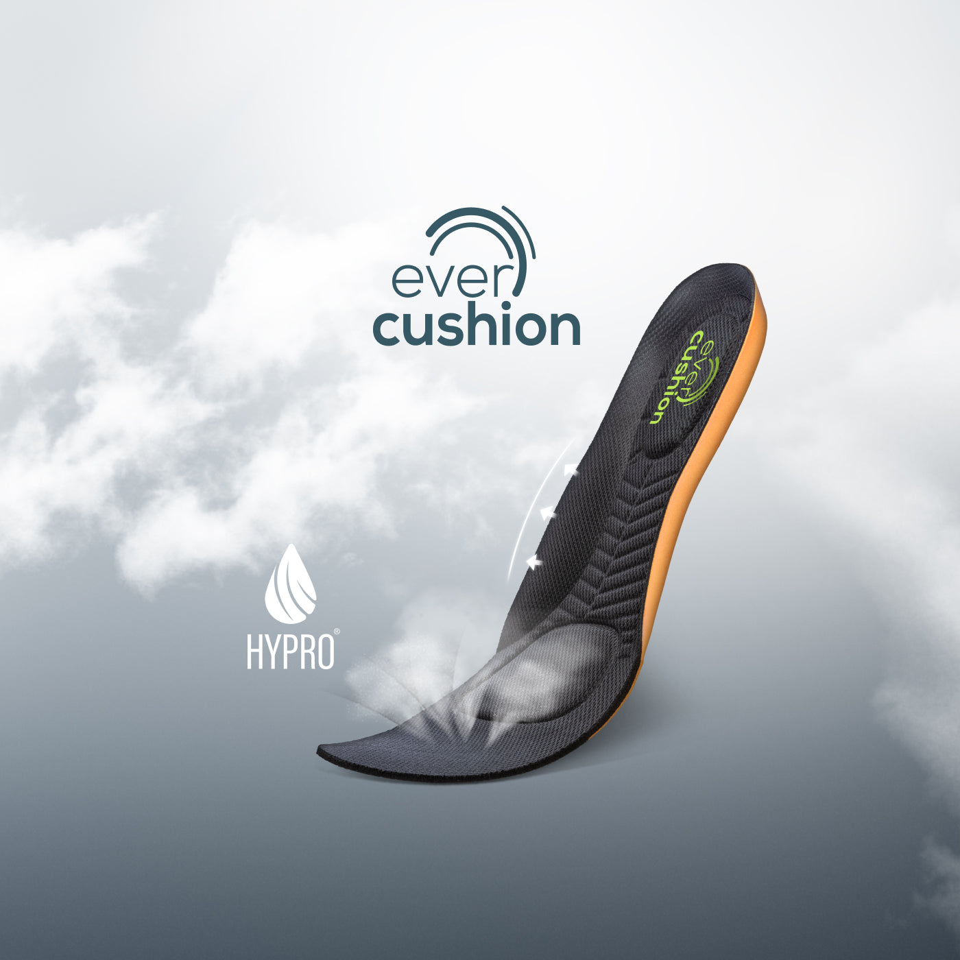 Alle Motion Cloud modeller er udstyret med Evercushion® CUSTOM FIT indlægssåler. Takket være svangstøttens forskellige former, tilpasser sålen sig optimalt til føddernes behov, aflaster leddene og stimulerer musklerne. HYPRO ODOR CONTROL bekæmper årsagerne til ubehagelige lugte. Det betyder, at coatede overflader forbliver friske og beskyttede i længere tid.