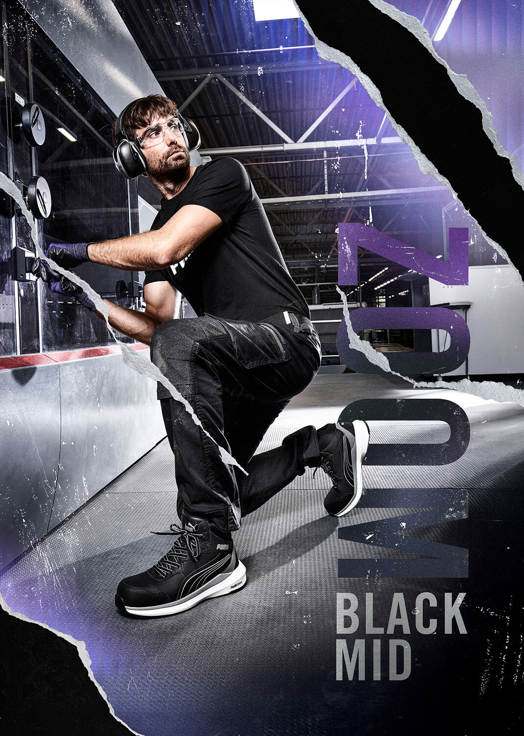 PUMA SAFETY har taget den teknologi, der bruges til løbesko, og kombineret den med det, du har brug for på arbejdet. Den avancerede PWR.FOAM®-mellemsål med integreret PWR.BEADS®-teknologi returnerer op til 70% af energien ved hvert skridt og reducerer dermed træthed i både fødder og led – selv ved lange arbejdsdage på hårdt underlag.