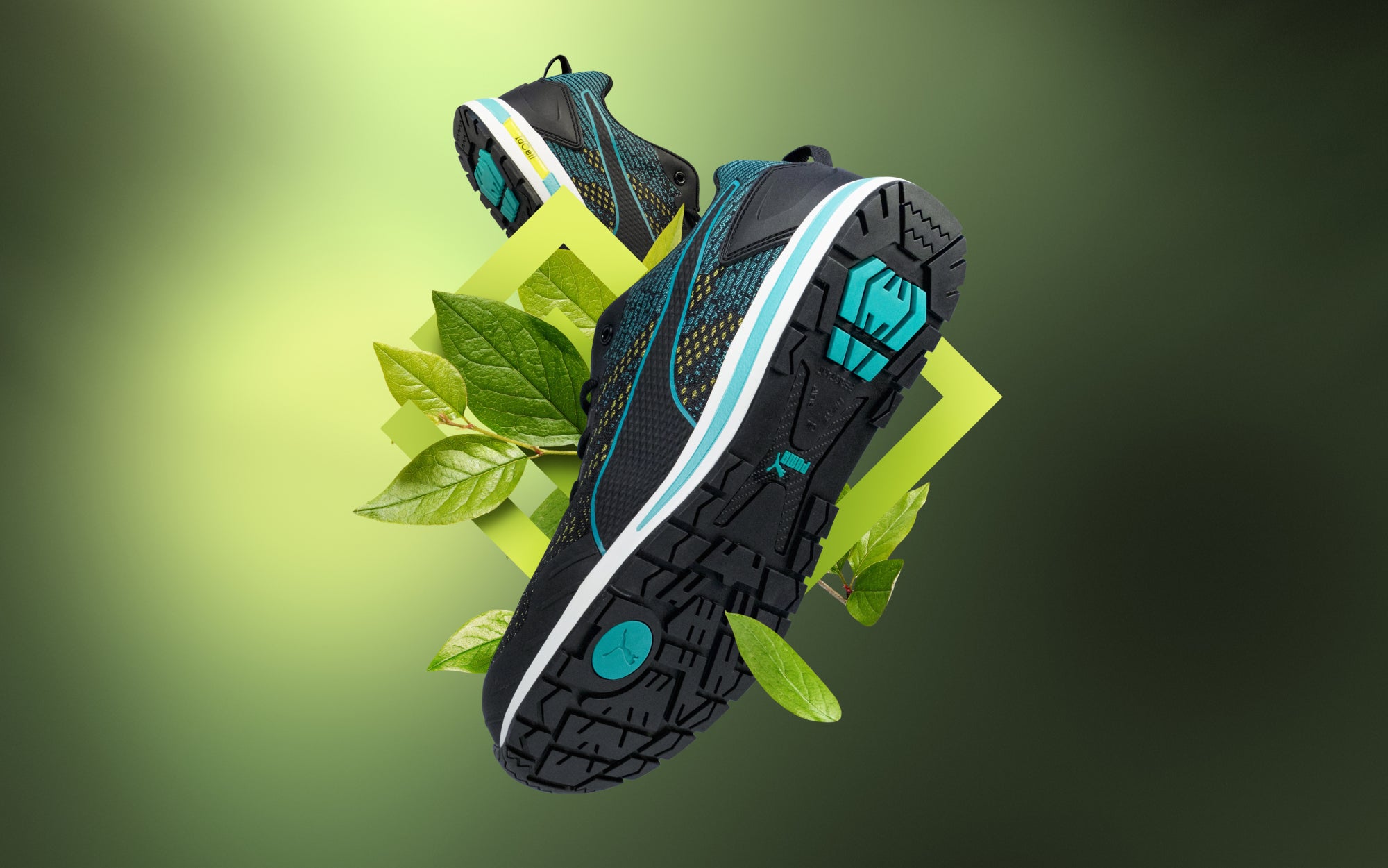 Puma Safety Vivid GH Low er delvist fremstillet af PET-flasker og er et aktivt bidrag til klimabeskyttelse. Sikkerhedsskoen består af flere forskellige miljøvenlige elementer som er fremstillet af genbrugte PET-flasker, heriblandt en særlig miljøvenlig Evercushion® Green indlægssål, en slidstærk og åndbar SAFETY KNIT® Green tekstiloverdel, og et metalfri og yderst fleksibelt FAP® Green sømværn.