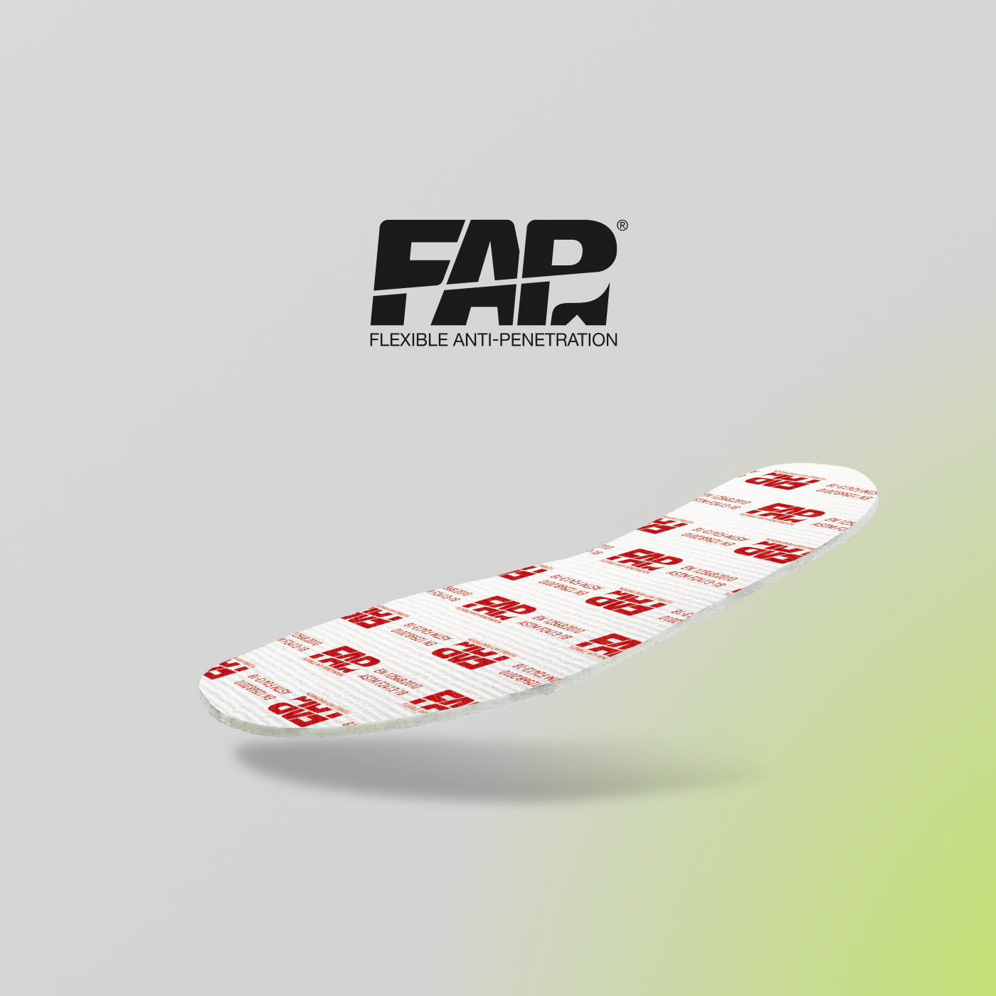 Det lette og fleksible sømværn er fremstillet af keramiskcoatede fibre og beskytter fødderne mod gennemtrængende objekter og er standard for alle Scuff Caps EVO modeller.