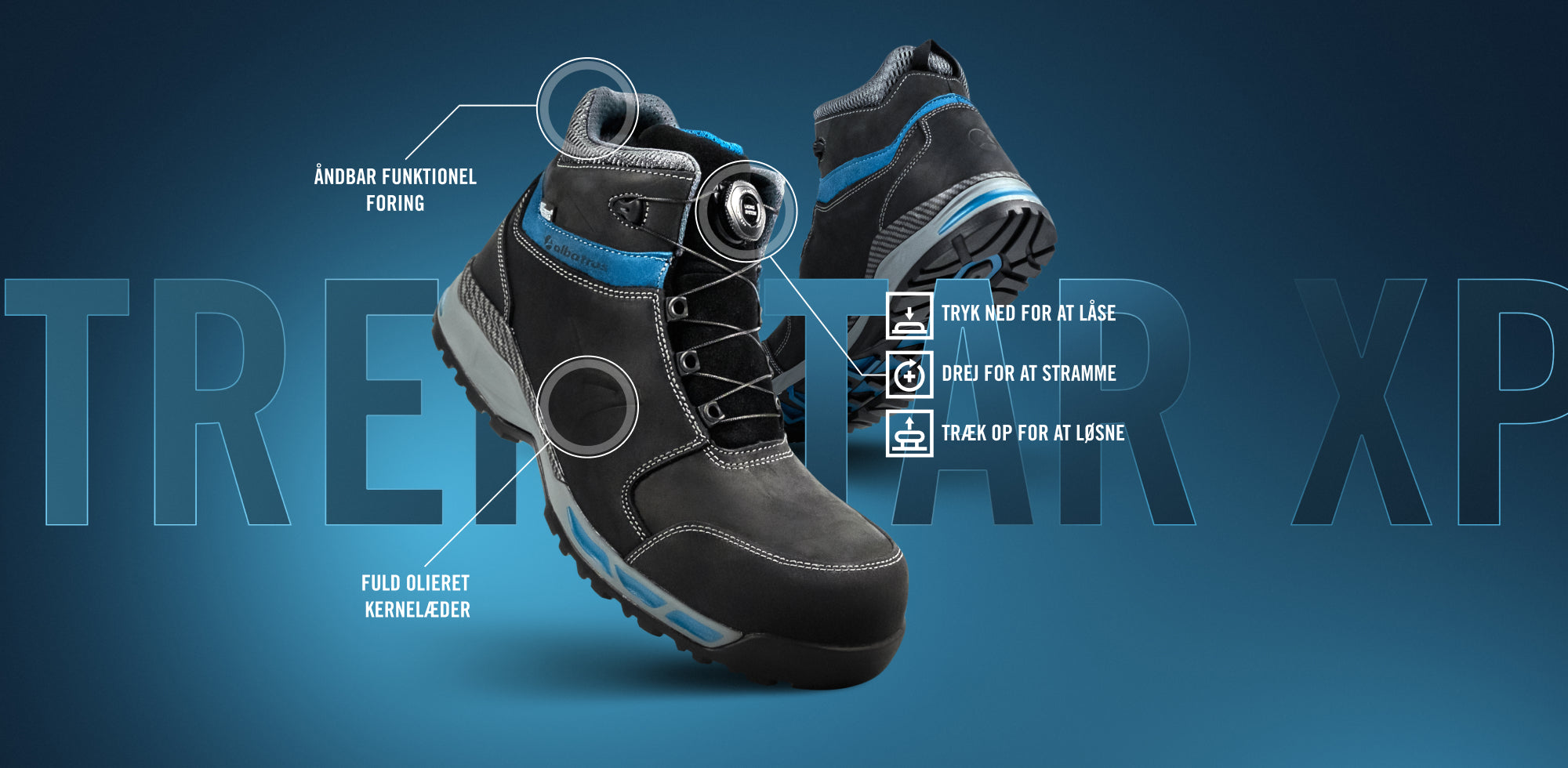 Pålidelig beskyttelse, fremragende bærekomfort, præcis og behagelig pasform, let pleje, højkvalitetsmaterialer, optimal fodsikkerhed især på ujævne overflader og alt sammen i et overbevisende design - TREKSTAR XP-modellerne har alt hvad du behøver i hårdt hverdagsarbejde.