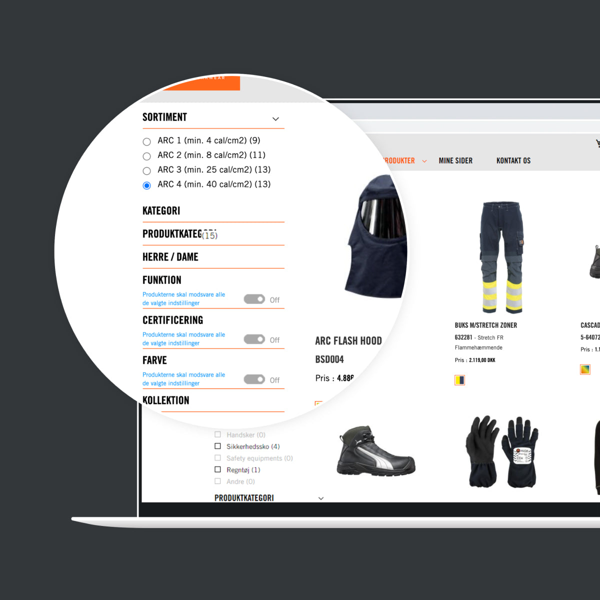Jeres fulde sortiment navigerer du nemt igennem ved hjælp af menuen i toppen af siden. Den er selvfølgelig tilpasset netop jeres sortiment!
