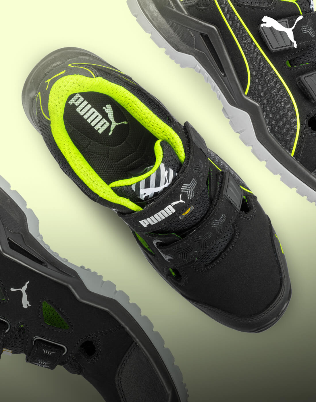 Branchens fedeste sikkerhedssko! PUMA Safety er et innovativt højtydende brand af sikkerhedssko, -støvler og -sandaler, der er udstyret med en sporty attitude. Det perfekte valg for dig, der ønsker sikkerhedssko med et lige så fedt design som dine sneakers udenfor arbejdstid.